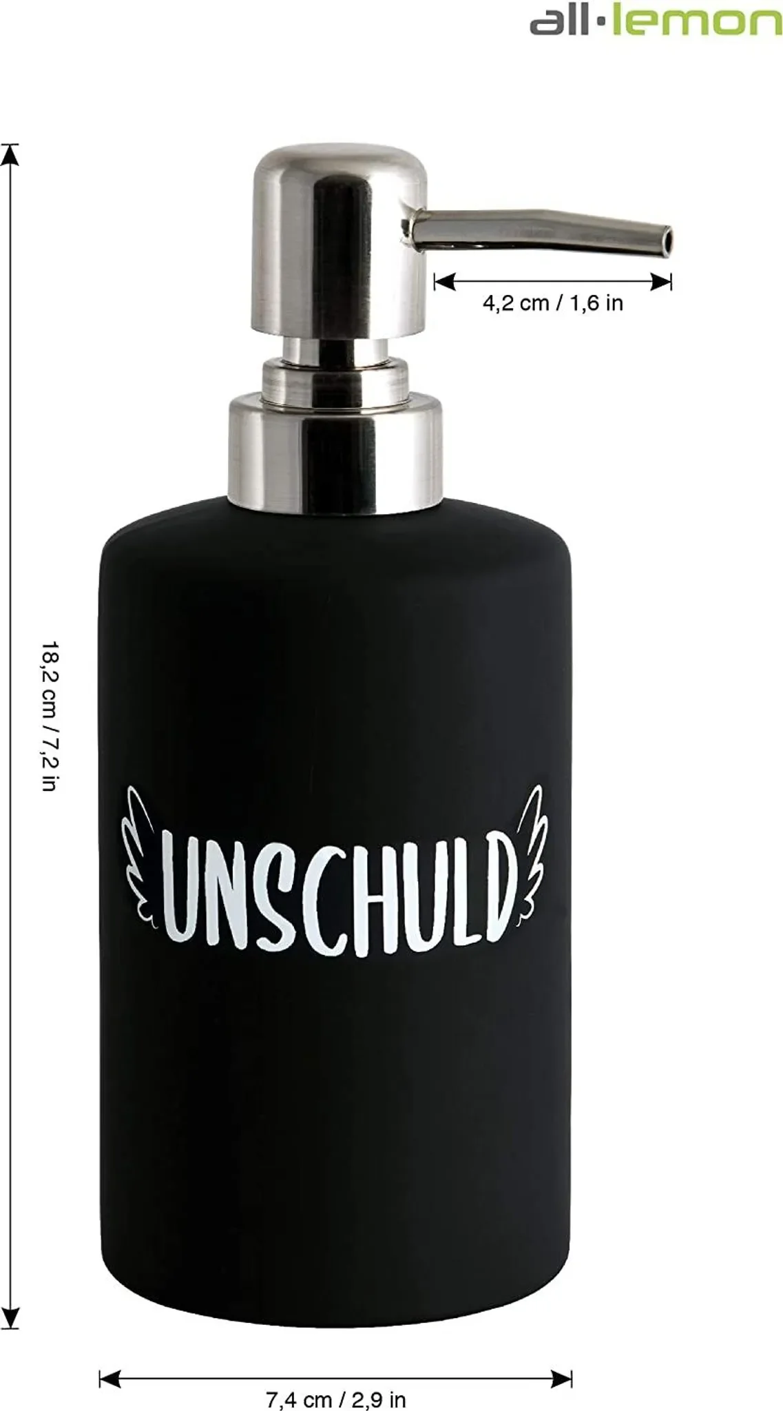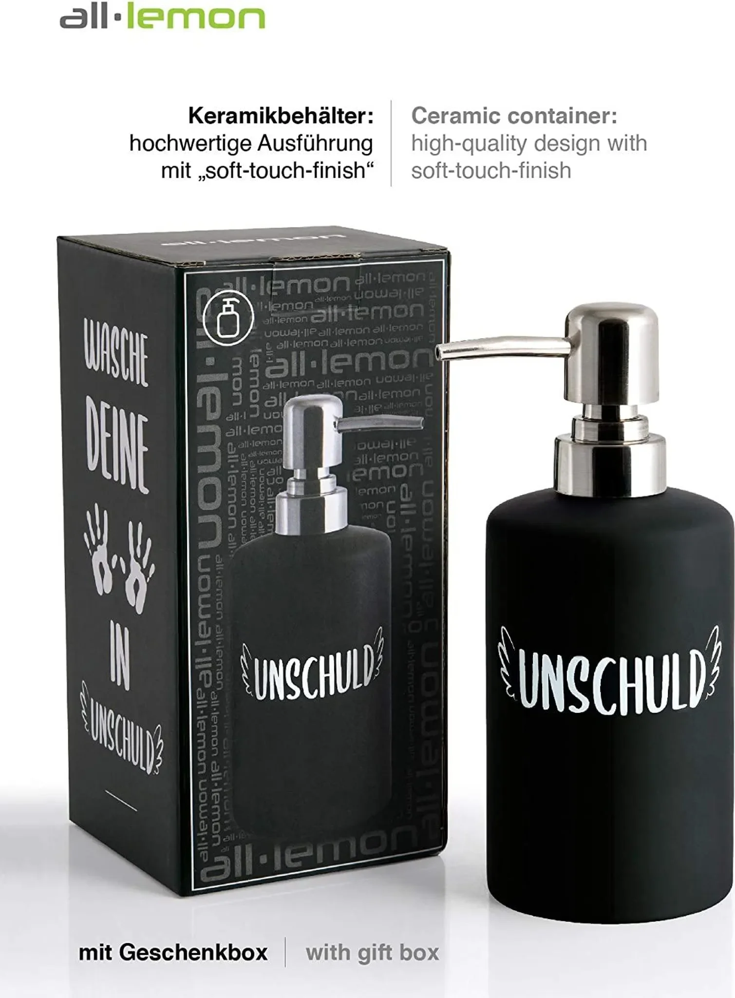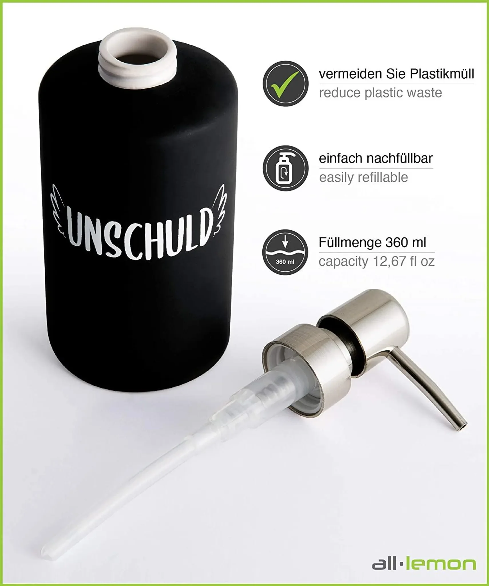 Produktinformationen "All Lemon Keramik-Seifenspender „Unschuld“ – Schwarz Matt, 360 ml"