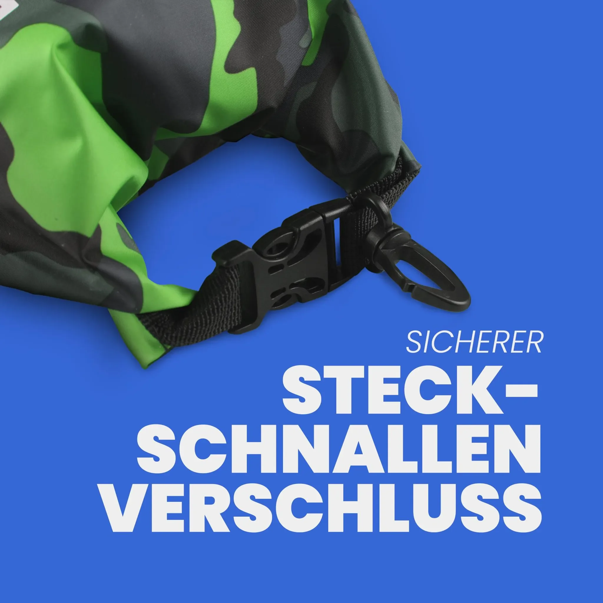 Der Bestlivings Schwimmbeutel „Drybag“ ist der ideale Begleiter für Abenteuer in der Natur – ob beim Angeln, Wandern, Kajakfahren oder am Strand. Mit seinem trendigen Camouflage-Design in Grün bietet er nicht nur zuverlässigen Schutz vor Wasser, Sand und Schmutz, sondern überzeugt auch mit modernem Outdoor-Look.