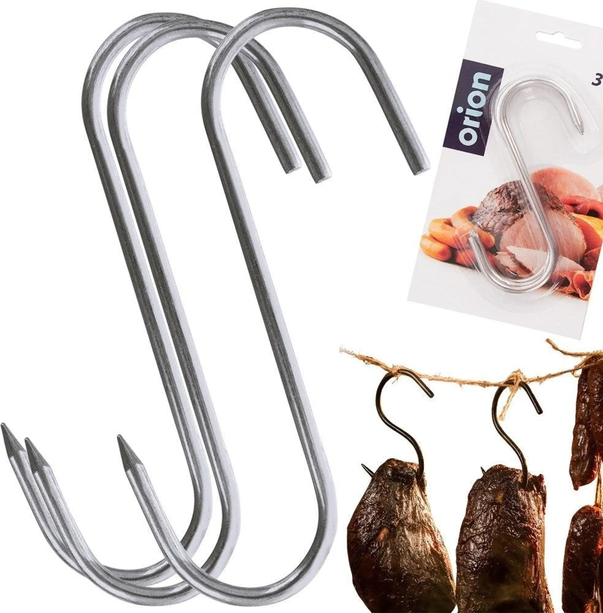 Dieses hochwertige 3er-Set S-förmiger Räucherhaken von ORION ist ein unverzichtbares Zubehör für das Räuchern und Trocknen von Fleisch, Fisch, Würsten und anderen Lebensmitteln. Aus robustem Edelstahl gefertigt, sind die Haken hitzebeständig, langlebig und belastbar – ideal auch für größere Fleischstücke.